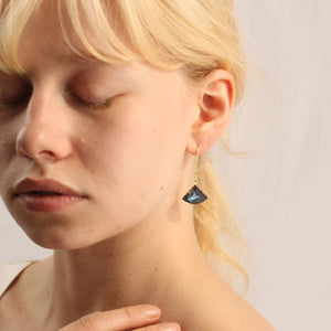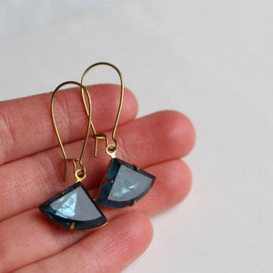 Add a touch of vintage glamour to your look with these stunning French Navy Art Deco Earrings. Featuring beautifully faceted fan-shaped vintage glass jewels in a rich, deep French navy hue, these earrings capture the timeless elegance of the Art Deco era. Their minimalist yet striking design makes them perfect for both everyday wear and special occasions.