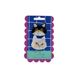 This adorable duo features one sleek black cat and one cute white cat, both crafted from durable acrylic for a stylish and long-lasting finish. Whether you’re looking to elevate your everyday look or surprise a cat-loving friend, these easy-to-use clips are the perfect playful addition to any hairstyle.