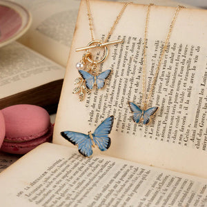 Embrace the beauty of nature with the Fable England Enamel Blue Butterfly Short Necklace. This delicately hand-painted charm captures the essence of transformation and new beginnings, making it a meaningful addition to any jewellery collection. Inspired by vintage botanical illustrations and Victorian curiosities, this intricately detailed butterfly brings a touch of nostalgia and elegance to your style.