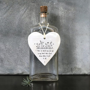 Express your love in the most heartfelt way with the East of India “Have So Much Love for You” Wobbly Hanging Heart. This beautifully crafted porcelain decoration is designed to add a touch of sentiment and charm to any home.
