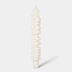 Forget fiddly cake toppers. This bold 9-inch taper candle says it all with chunky, joyful lettering that spells out HAPPY B-DAY in 3D. Handmade from start to finish, it’s the kind of candle that gets noticed and then promptly Instagrammed.