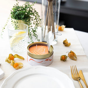 Sealed like gourmet tinned fish but scented like sunshine, this Orange Salmon CandleCan is the kind of eccentric luxury your living room didn’t know it needed. Handmade in Lithuania from a 100% natural soy and coconut wax blend, it pairs playful packaging with a refreshingly crisp orange scent.