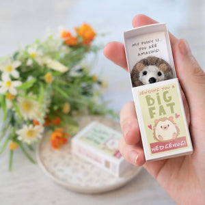 Send a heartfelt hedgehug with this adorable handmade wool felt hedgehog nestled inside a charming matchbox.