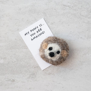 This thoughtful mini gift features the message “Sending You A Hedgehug” on the outside, and when opened, it reveals a handmade wool felt hedgehog along with a heartwarming note that says “My point is… you’re amazing!”