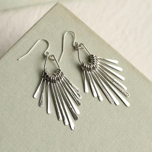 These Art Deco Fringe Earrings in Sterling Silver are a masterclass in movement, catching the light (and compliments) with every turn of your head. Inspired by the clean lines and glamour of 1920s design, each earring features a cascade of sterling silver bars forming a fluid, diamond-shaped silhouette.