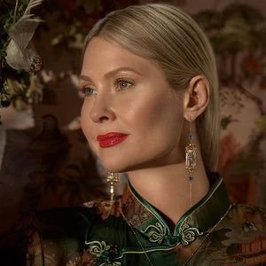 These exquisite Bird Cage Drop Earrings are miniature works of wearable art. Featuring a delicate blue bird perched inside an 18ct gold-plated cage, they’re accented with hand-set sapphire-hued crystals that catch the light (and compliments) with every turn of your head. The look is luxuriously eccentric - think vintage glamour meets whimsical storytelling.