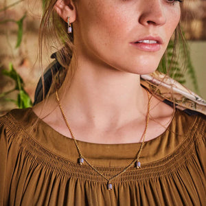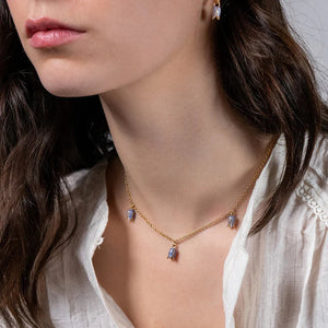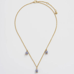 Inspired by the enchanting sight of bluebells blooming in the wild, the Fable England Bluebell Charm Necklace captures the magic of springtime. This elegant necklace features three beautifully hand-painted bluebell charms, delicately suspended from a gold-plated chain for a timeless and whimsical look.