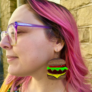 🍔 Burger Fast Food Statement Earrings, Handmade Joy You Can Wear!