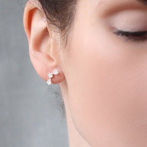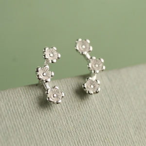 Add a touch of floral charm to your jewellery collection with these beautifully crafted Daisy Chain Sterling Silver Stud Earrings. Featuring a row of three tiny forget-me-not flowers, each earring is made from high-quality sterling silver with a subtle brushed texture for an elegant, timeless finish.