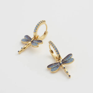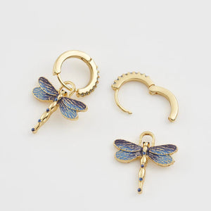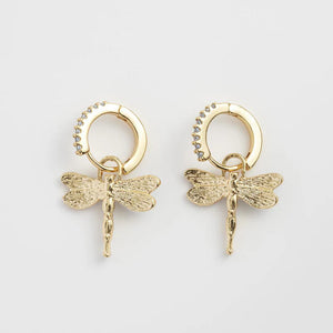 Designed for versatility, the detachable dragonfly charms allow you to wear them two ways—either as statement earrings or as elegant crystal-studded hoops. Inspired by the beauty of dragonflies in flight, this delicate design adds a touch of whimsical charm to any outfit.