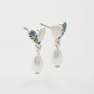 A romantic ode to nostalgia, these silver-plated heart earrings are adorned with dainty hand-painted forget-me-not flowers and finished with a lustrous faux pearl drop. The soft blue enamel adds a dreamy pop of colour, while the heart silhouette and shimmering accents keep things timeless. They’re light enough for everyday but pretty enough to turn heads.