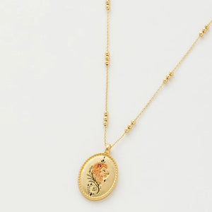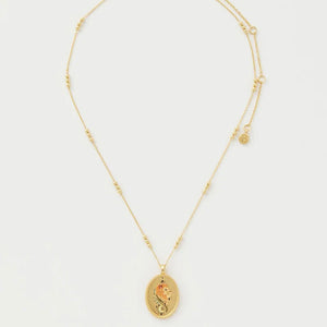 Embrace your bold spirit with the Fable England Leo Zodiac Necklace. Inspired by the strength and charisma of the lion, this intricately designed pendant symbolises confidence, leadership, and courage. Hand-painted enamel detailing brings the celestial charm to life, while delicate engravings of Victoriana-style stars enhance its timeless appeal. Crafted with 22k gold-plated metals, this piece is the perfect talisman to wear close to your heart or gift to a loved one who embodies the fiery essence of Leo.
