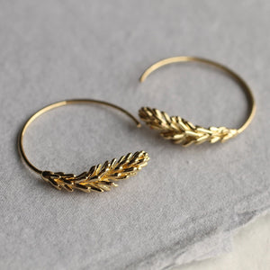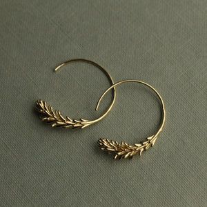 Crafted from plated brass, these exquisite hoops feature a beautifully detailed rosemary leaf design, capturing the delicate beauty of botanical sprigs.