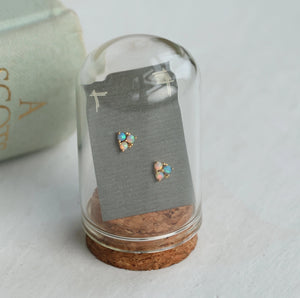 Crafted from gold-plated sterling silver and set with three ethereal opals in a triangular cluster, these delicate earrings shimmer with flecks of turquoise and gold when they catch the light. No two opals are exactly alike, and that’s exactly the point, each stone brings its own quiet magic.