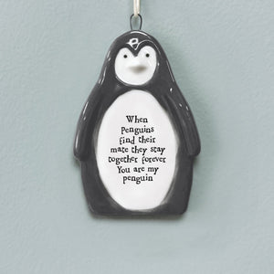 Celebrate love and loyalty with this charming East of India Penguin Hanger. Made from delicate porcelain, this beautifully crafted plaque features an adorable penguin design with the heartfelt message: