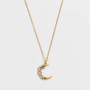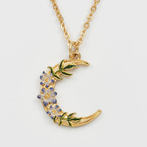 Step into the mystique of twilight with the Nightshade Moon Gold Chain Necklace – a poetic symbol of nature’s quiet magic and the beauty of fleeting moments. Inspired by moonlit hedgerows and the dusky hum of bees, this crescent pendant is adorned with delicate hand-painted nightshade blooms, turning wild flora into wearable art. The soft 22ct worn gold plating gives it a vintage, celestial glow, making it the perfect piece for dreamers, nature-lovers, and moonlight wanderers alike.