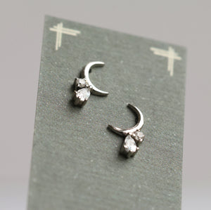 Sterling Silver Moon Stud Earrings – Elegant Celestial Style.