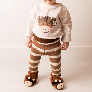 Adorably soft and endlessly practical, our Neutral Highland Cow Booties are the finishing touch to your baby’s farmyard look. Designed to stay put during wriggling, crawling or pram adventures, they’re fleece-lined for warmth and feature an elasticated cuff with easy Velcro fastening—ideal for on-the-go parents and kick-happy babies.