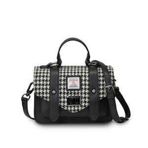 Introducing the epitome of on-the-go elegance: the Harris Tweed Satchel in a captivating Black & White Dogtooth pattern. This satchel is the perfect blend of compact practicality and timeless style, making it your ideal everyday companion.