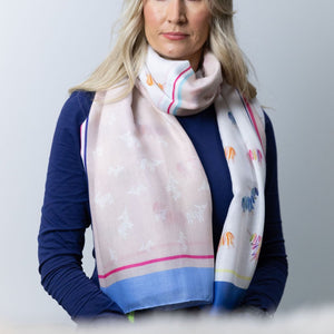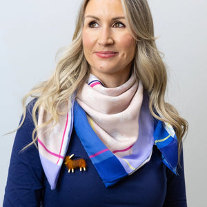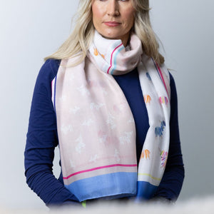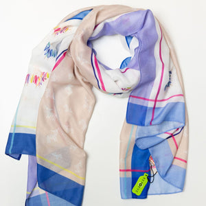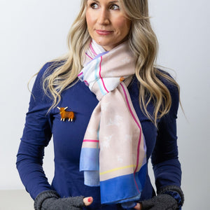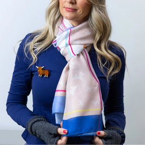 Wrap yourself in warmth and Scottish charm with our Highland Cow Scarf - Thistle. Featuring a beautifully soft and lightweight feel, this eco-friendly scarf is crafted from Repreve, a high-quality recycled fabric. Its elegant blend of stone, purple, and blue hues makes it a versatile accessory for any season.