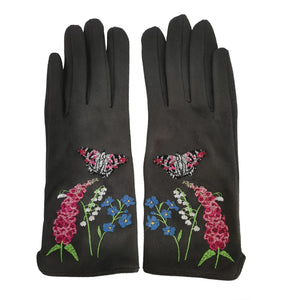 These Secret Garden Butterfly Gloves are no shrinking violets. With a dark grey suedette finish and whimsical embroidery, they bring a botanical twist to winter dressing. The floral design features pink foxgloves, blue cornflowers, and a flurry of butterflies, all stitched in glorious detail. Soft on the inside and bold on the outside, just like your favourite people.