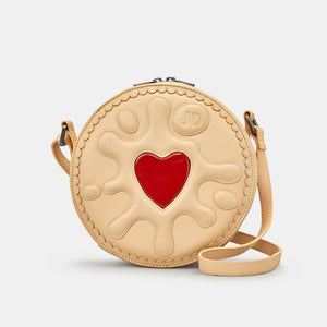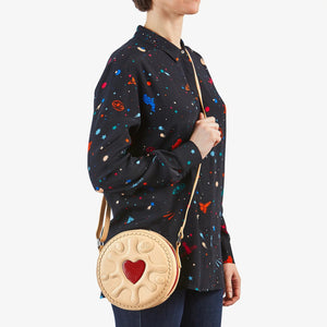 A bag that looks good enough to eat (but please don’t)! The Jammie Dodger Biscuit Leather Cross Body Bag is the ultimate treat for style lovers with a sweet tooth. Crafted from soft cream leather and finished with the iconic jammy red love heart centre, this official Jammie Dodger handbag is as fun as it is functional. With its zip-around fastening, inside pockets, and adjustable strap, it’s the perfect blend of quirky charm and everyday practicality.