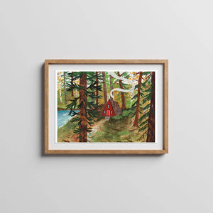Cosy up in cabin dreams, without chopping a single log. This A-Frame Cabin Art Print captures the charm of a red woodland hideaway in Maine, complete with towering pines, a winding forest path, and smoke curling from the chimney. A little slice of autumnal magic, it’s the perfect piece for anyone who craves the call of the wild.