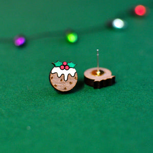 These cheerful Christmas Pudding Stud Earrings are a miniature celebration of the season, hand-painted with creamy white icing, bright red berries and a sprig of holly that even your gran would approve of. Each tiny pud is laser-cut from FSC-certified sustainable wood, because being eco-conscious never goes out of style and finished with hypoallergenic stainless steel posts for fuss-free, nickel-free comfort.