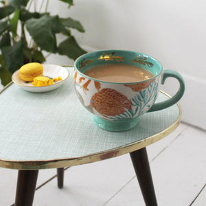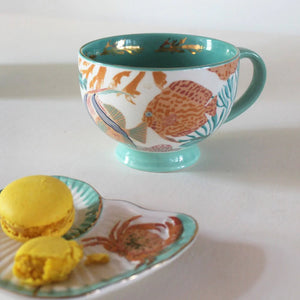Meet your new favourite brew buddy: a large, gloriously detailed teacup where the ocean meets your morning cuppa. With a cheeky little ceramic fish peeking out from the base, shimmering gold coral dancing inside, and a riot of seaweed and fish swirling around the exterior, this mug is equal parts art and amusement.