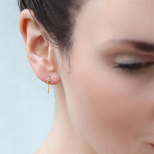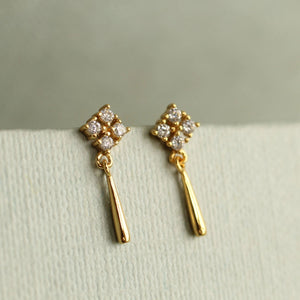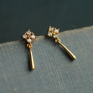 These Edwardian-inspired gold drop studs may be small, but they pack a perfectly-formed punch. Crafted from gold-plated 925 sterling silver, each earring features a square of shimmering cubic zirconia with a delicate teardrop dangle, just enough sparkle to catch the light, but never shouty. Think vintage opulence scaled down for everyday magic.