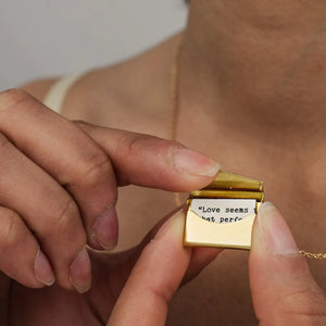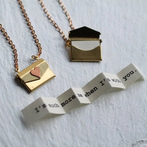 Meet the Envelope Locket – a miniature love letter you can wear. Crafted from vintage brass, this charming envelope opens with a working clasp to reveal a hidden surprise: a tiny folded message tucked inside, personalised with the words of your choice. Whether it’s a secret sentiment, a cheeky inside joke, or a quote close to your heart, this little note stays with you wherever you go.