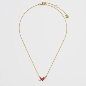Celebrate romance with the Fable England Lovestruck Heart Necklace—a charming and elegant piece inspired by Cupid’s arrow. This hand-painted red enamel heart is pierced by a golden arrow, symbolising love and devotion. Crafted with 22ct gold-plated brass, the necklace features an adjustable chain (41cm + 5cm extender), making it perfect for layering or wearing solo. Whether as a meaningful gift or a self-love statement, this delicate yet striking pendant is a must-have in any jewellery collection.