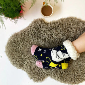 These Moomin Star Slipper Socks are a cosy little constellation of cuteness. With a fleece lining that’s fluffier than a snowdrift and a knitted design that stars Moomin himself gazing dreamily at the sky, these are your ticket to ultimate indoor comfort. The night-sky navy background is scattered with pink, yellow and white stars, while the heels and toes pop with cheerful colour-block accents.