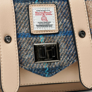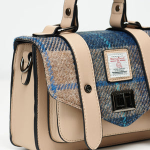Navy & Beige Tartan Medium Satchel with Harris Tweed®