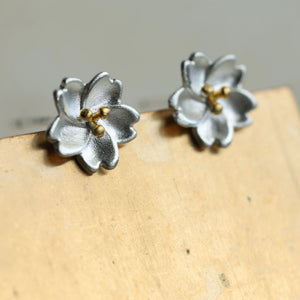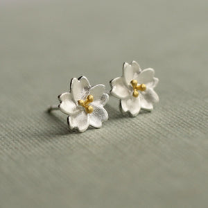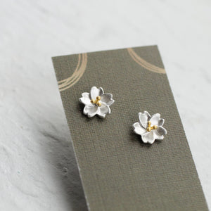 These delicate Sakura Flower stud earrings are a subtle nod to springtime in full bloom. Crafted from sterling silver with softly curved petals and a gold-plated centre, they’re the kind of everyday luxury that adds a quiet sparkle to your day (without shouting about it). Understated, sweet, and a touch romantic - like cherry blossoms in earring form.