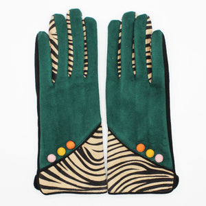Crafted from 100% polyester, the forest green fabric is beautifully contrasted with zebra stripes, while a row of colourful fabric-covered buttons adds a cheeky pop of personality. Lined with soft cotton, they’re as cosy as they are eye-catching – perfect for keeping your hands warm without compromising on style.
