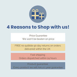 Quality Guarantee. 1 Year product guarantee on every product we sell. If it becomes faulty during this time return it and we will either replace or refund you. |