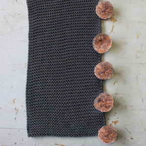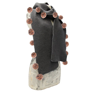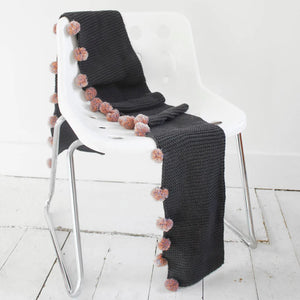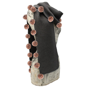 Meet the Loop Dark Grey Scarf: effortlessly cool, endlessly cosy. This chunky charcoal-grey cable knit is luxuriously soft and generously sized, ideal for wrapping, looping, or draping just-so. But what really makes it pop? A playful trail of fluffy pom poms in peach and pale blue, dancing down one side. It’s a subtle statement scarf with a side of fun.