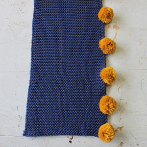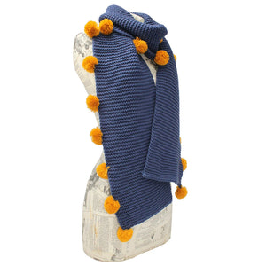 The Loop Navy Scarf from House of Disaster adds a cheeky twist (literally) to your cold-weather wardrobe. This beautifully simple cable-knit scarf is brought to life with a parade of playful mustard pom poms down one side - because why blend in when you can bounce?