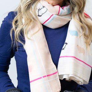 Wrap yourself in sustainable Scottish style with the Woolly Ewe Scarf - Pebble. Made from Repreve, an ultra-soft recycled fabric crafted from plastic bottles, this scarf is as eco-friendly as it is elegant. Featuring a vibrant Woolly Ewe pattern on a versatile pebble-toned base, it’s the perfect accessory for any season.