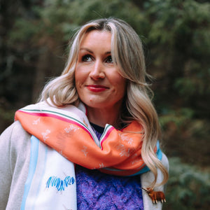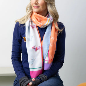 - Striking Design: The Coral scarf features bright pops of orange and pink, while the Thistle version offers more subdued tones of stone, purple, and blues.
