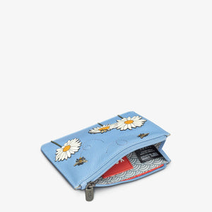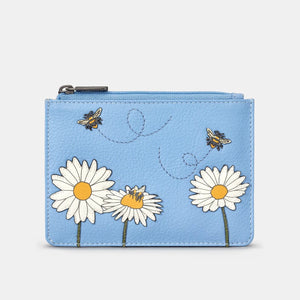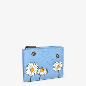 Our Bee Happy Leather Zip Top Purse is as joyful as it is practical. Made from supple blue leather, this slimline style features hand-stitched appliqués of buzzing bumblebees and cheerful daisies. It’s perfectly sized to slip into any handbag or pocket and has room for cards, coins, and folded notes inside, plus a handy back card slot for your travel or go-to debit card. A little piece of spring, all year round.