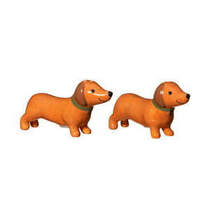 Add a dash of fun to your dining table with these delightful dachshund salt and pepper shakers. The lovable long dogs bring a smile to every meal, whether you're hosting a dinner party or enjoying breakfast for one. A playful addition to our kitchenware collection.