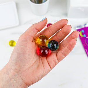 These Rainbow Bath Pearls bring back the joy of childhood bath time, now with a grown up twist - nourishing bath oil hidden inside each glossy sphere.