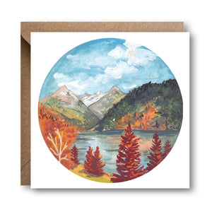 Perfect for birthdays, thank-yous, or just-because notes, this card is a thoughtful way to bring the beauty of autumn mountainscapes to someone’s day.