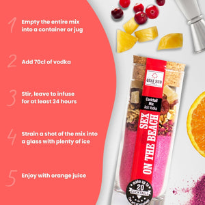 This Sex On The Beach Cocktail Mix is a ready-to-infuse blend packed with fruity flavour and sunny energy - just add vodka and let time do the rest. With pineapple, cranberry and orange notes layered with delicate botanicals, it delivers a classic cocktail with zero shaking skills required.