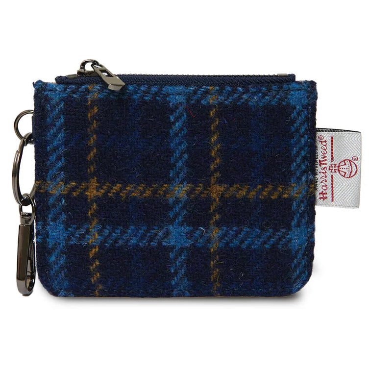 This navy tartan card zip wallet pairs authentic Harris Tweed® with smooth microfibre leather for a compact accessory that punches well above its size.