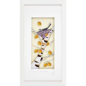 Bring the tranquillity of nature into your home with A Place to Call Home, a beautifully detailed framed print featuring delicate silver birch trees and a wagtail nestled among the branches. This elegant artwork captures the charm of the Irish countryside, offering a peaceful and timeless addition to any space.