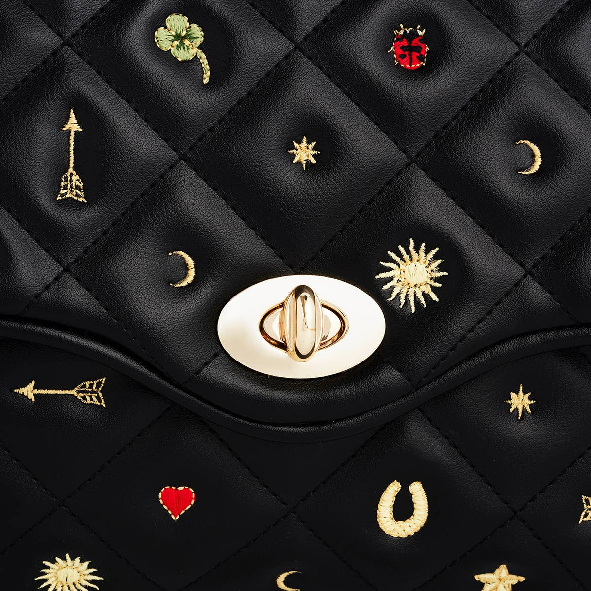 - Quilted faux leather with floral embroidery