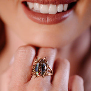 The Bejewelled Beetle Ring from Bill Skinner is a true statement piece - bold, beautiful, and brimming with personality.